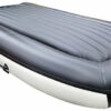 Надувное дно лодки Хантер 385 А Лайт – имеет безкилевую геометрию, это максимально повысило остойчивость лодки в «статике», что в свою очередь позволило человеку спокойно стоять на надувном дне НДНД. Это по достоинству оценят любители спиннинга, которые любят ловить стоя в заброс. Надувное дно крепится к баллонам широкой полосой с двойным контуром, что придает конструкции необходимую жесткость. Само дно НДНД представляет собой замкнутый и независимый герметичный отсек. С внешней стороны надувного дна. установлена специальная жесткая пластина, так называемый «интерцептор», он существенно облегчает выход на глиссирование, и управление лодкой. Конструкция, надувного дна имеет необходимую жесткость и обеспечивает лодке высокие скоростные характеристики, позволяя выходить на глиссирование даже под маломощным мотором.